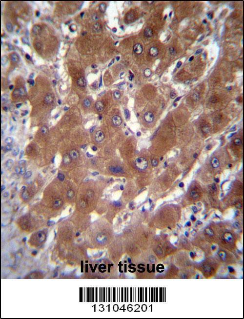 - GBA3 Antibody (C-term) (Cat. #OAAB08544)immunohistochemistry analysis in formalin fixed and paraffin embedded human liver tissue followed by peroxidase conjugation of the secondary antibody and DAB staining.This data demonstrates the use of GBA3 Antibody (C-term) for immunohistochemistry. Clinical relevance has not been evaluated.