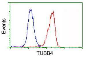 - Flow cytometric analysis of Jurkat cells, using anti-TUBB4 antibody (TA503086), (Red), compared to a nonspecific negative control antibody, (Blue).