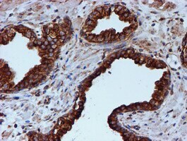 - Immunohistochemical staining of paraffin-embedded Carcinoma of Human prostate tissue using anti-TUBB4 mouse monoclonal antibody. (TA503110)