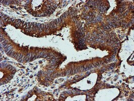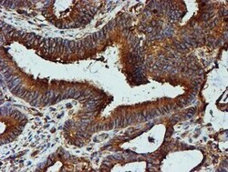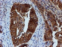 - Immunohistochemical staining of paraffin-embedded Adenocarcinoma of Human colon tissue using anti-TUBB4 mouse monoclonal antibody. (TA503110)