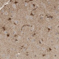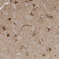 - Immunohistochemical staining of human cerebral cortex with SLFN14 polyclonal antibody (Cat # PAB22734) shows strong cytoplasmic positivity in glial cells at 1:50-1:200 dilution.