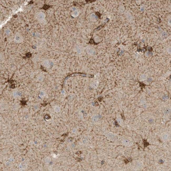 - Immunohistochemical analysis of SLFN14 in human cerebral cortex using SLFN14 Polyclonal Antibody (Product # PA5-54658) shows strong cytoplasmic positivity in glial cells.