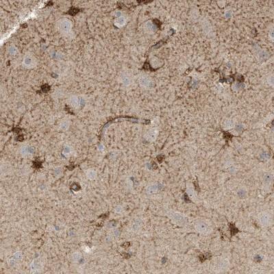 - Immunohistochemistry-Paraffin: SLFN14 Antibody [NBP1-91068] - Staining of human cerebral cortex shows strong cytoplasmic positivity in glial cells.