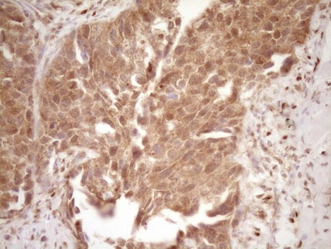 - Immunohistochemical staining of paraffin-embedded Adenocarcinoma of Human colon tissue using anti-GFI1 mouse monoclonal antibody. (Heat-induced epitope retrieval by 1 mM EDTA in 10mM Tris, pH8.5, 120°C for 3min, TA805544)