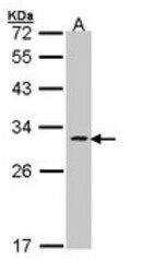- Sample (30 ug of whole cell lysate). A: 293T. 12% SDS PAGE. FASLG antibody diluted at 1:1000.
