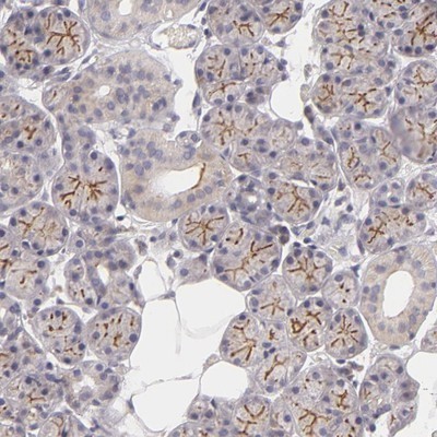 - Immunohistochemistry-Paraffin: PMCA3 Antibody [NBP1-87259] - Staining of human salivary gland shows moderate membranous positivity in glandular cells.