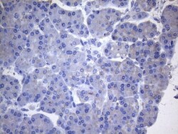 - Immunohistochemical staining of paraffin-embedded human pancreas tissue within the normal limits using anti-CYTH2 mouse monoclonal antibody. (Heat-induced epitope retrieval by 1mM EDTA in 10mM Tris buffer (pH8.5) at 120°C for 3 min, TA809012)(1:150).
