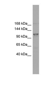 - Western blot analysis of MCF7 cell lysate using CCDC87 antibody, N-term (GTX44961)