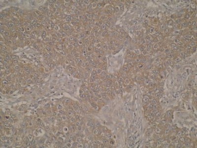 - Immunohistochemistry: LKAAEAR Motif Containing Protein 1 Antibody (Z36P2C1E7) [NBP2-50477] - Immunohistochemistry was performed on formalin-fixed, paraffin-embedded lung cancer tissue sections. Cytoplasmic staining was observed.