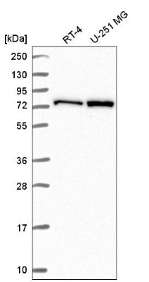 - Western Blot: CTP synthase Antibody [NBP2-57099] - Western blot analysis in human cell line RT-4 and human cell line U-251 MG.