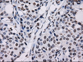 - IHC of paraffin-embedded Adenocarcinoma of breast tissue using anti-ID3 mouse monoclonal antibody. (Dilution 1:50).