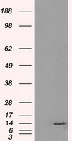 - HEK293T cells were transfected with the pCMV6-ENTRY control (Left lane) or pCMV6-ENTRY ID3 (Right lane) cDNA for 48 hrs and lysed. Equivalent amounts of cell lysates (5 ug per lane) were separated by SDS-PAGE and immunoblotted with anti-ID3.