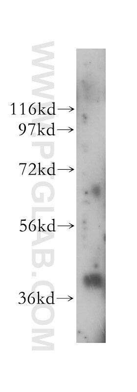 - Mouse skeletal muscle tissue were subjected to SDS PAGE followed by western blot with 14589-1-AP (IKIP antibody) at dilution of 1:500 incubated at room temperature for 1.5 hours.