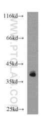 - Mouse thymus tissue were subjected to SDS PAGE followed by western blot with 14589-1-AP (IKIP antibody) at dilution of 1:500 incubated at room temperature for 1.5 hours.