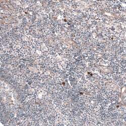 - Immunohistochemical staining of RAB27B in human tonsil using RAB27B Polyclonal Antibody (Product # PA5-54096) shows mainly very weak positivity in lymphoid cells as expected.