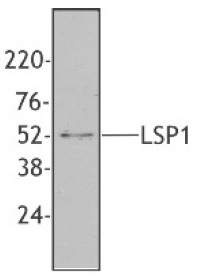 - Cell extracts from THP-1 cells were western blotted with anti-LSP1 Antibody (Clone 5E3).
