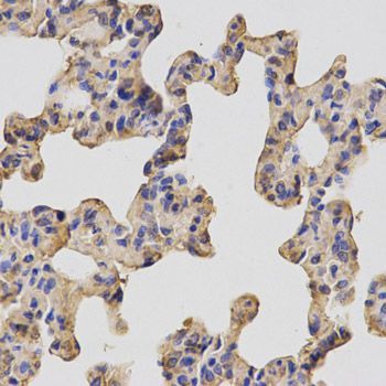 - IHC-P analysis of rat lung tissue using FANCC antibody at a dilution of 1:200.