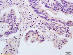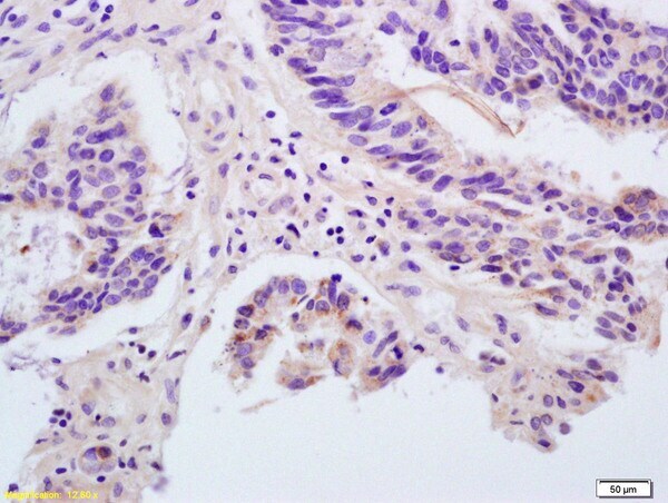 - Formalin-fixed and paraffin embedded human rectal carcinoma labeled with Rabbit Anti ANGPTL1/Angiopoietin 1/ANG-1 Polyclonal Antibody, Unconjugated (bs-0800R) at 1:200 followed by conjugation to the secondary antibody and DAB staining.