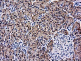 - IHC of paraffin-embedded Human pancreas tissue using anti-KCTD14 mouse monoclonal antibody.
