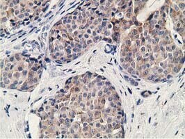 - Immunohistochemical staining of paraffin-embedded Adenocarcinoma of Human breast tissue using anti-KCTD14 mouse monoclonal antibody. (Heat-induced epitope retrieval by 10mM citric buffer, pH6.0, 100°C for 10min, TA502638)