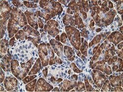 - Immunohistochemical staining of paraffin-embedded human pancreas tissue within the normal limits using anti-KCTD14 mouse monoclonal antibody. (Heat-induced epitope retrieval by 10mM citric buffer, pH6.0, 100°C for 10min, TA502638)