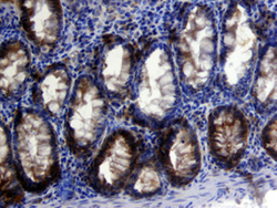 - MICA in Human Colon. MICA was detected in immersion fixed paraffin-embedded sections of human colon array using Goat Anti-Human MICA Biotinylated Antigen Affinity-purified Polyclonal Antibody (Catalog # BAF1300) at 10 µg/mL overnight at 4 °C. Tissue was stained using the Anti-Goat HRP-DAB Cell & Tissue Staining Kit (brown; Catalog # CTS008) and counterstained with hematoxylin (blue). Lower panel shows a lack of labeling if primary antibodies are omitted and tissue is stained only with secondary antibody followed by incubation with detection reagents. View our protocol for Chromogenic IHC Staining of Paraffin-embedded Tissue Sections.