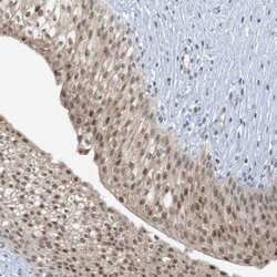 - Immunohistochemical analysis of UBE2E1 in human urinary bladder using UBE2E1 Polyclonal Antibody (Product # PA5-56476) shows moderate nuclear positivity in urothelial cells.