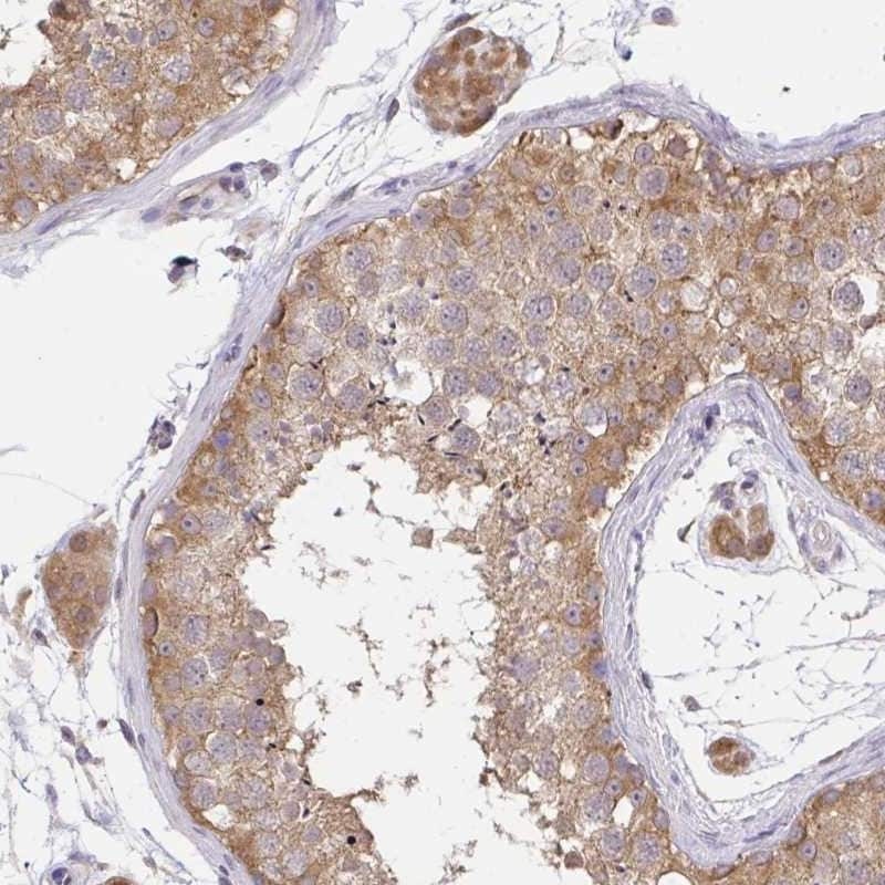 - Immunohistochemical analysis of C19orf54 in human testis using C19orf54 Polyclonal Antibody (Product # PA5-63648) shows moderate cytoplasmic positivity in cells in seminiferus ducts and Leydig cells.