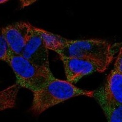 - Immunofluorescent staining of human cell line SH-SY5Y shows localization to cytosol & vesicles.