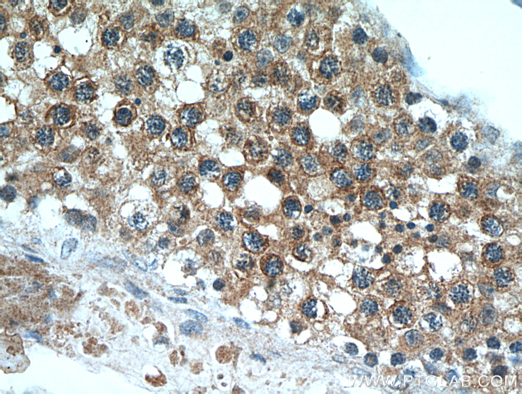 - Immunohistochemical of paraffin-embedded human testis using 20780-1-AP(C11orf70 antibody) at dilution of 1:50 (under 40x lens)