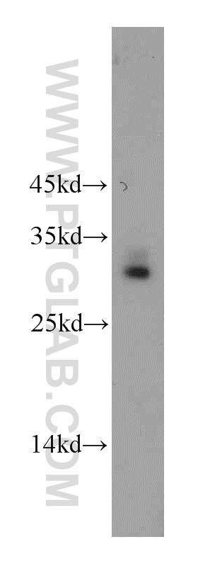 - mouse testis tissue were subjected to SDS PAGE followed by western blot with 20780-1-AP(C11orf70 antibody) at dilution of 1:400