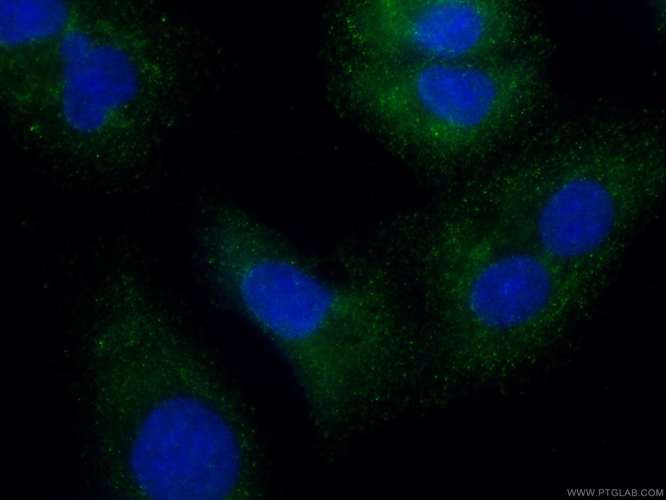 - Immunofluorescent analysis of (-20°C Ethanol) fixed A549 cells using (Product # 11125-1-AP) (TESC antibody) at dilution of 1:50 and CoraLite488-Conjugated AffiniPure Goat Anti-Rabbit IgG(H+L).