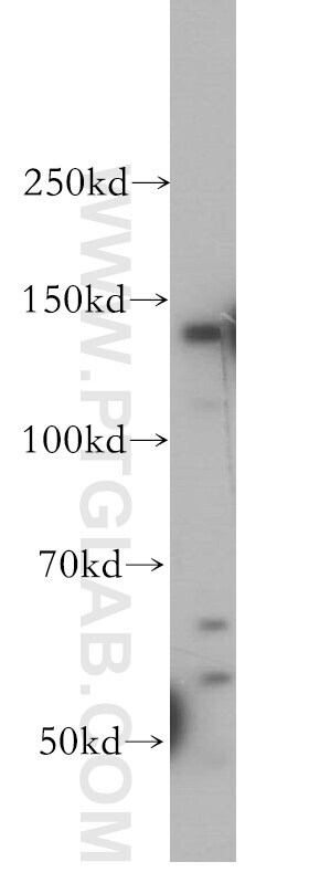 - HepG2 cells were subjected to SDS PAGE followed by western blot with 13550-1-AP (SFI1 antibody) at dilution of 1:400 incubated at room temperature for 1.5 hours.