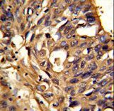 - Formalin-fixed and paraffin-embedded human lung carcinoma reacted with ETFDH Antibody , which was peroxidase-conjugated to the secondary antibody, followed by DAB staining. This data demonstrates the use of this antibody for immunohistochemistry; clinical relevance has not been evaluated.