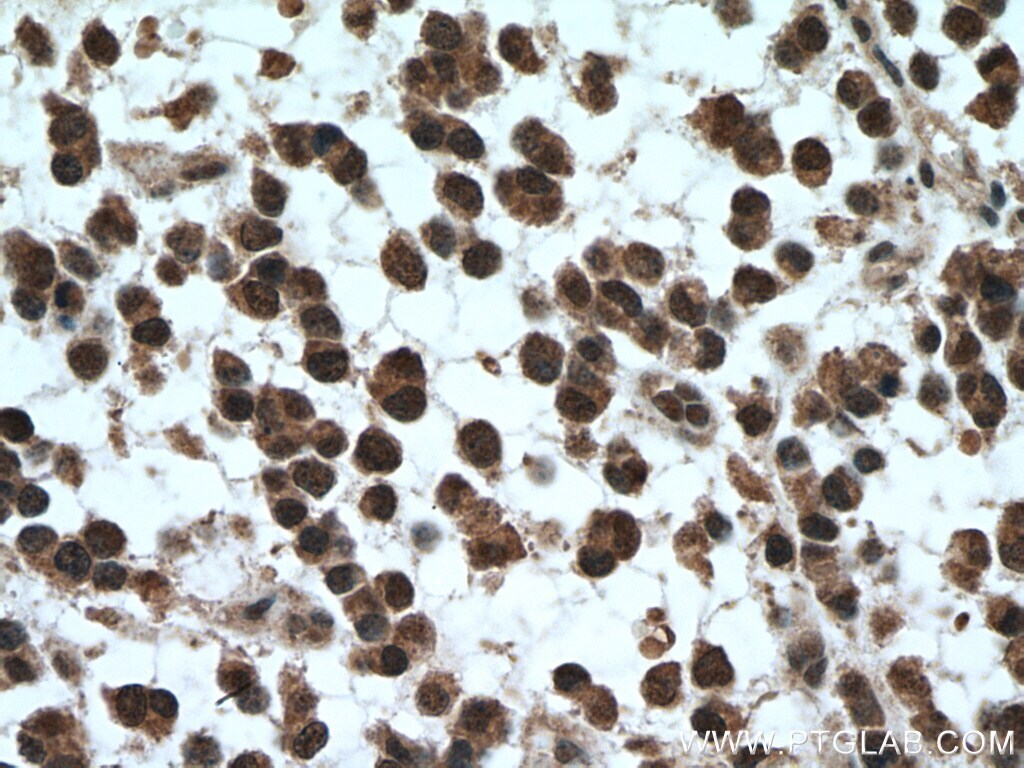 - Immunohistochemistry of paraffin-embedded human gliomas tissue slide using 10990-2-AP (SKP1 antibody) at dilution of 1:200 (under 40x lens) heat mediated antigen retrieved with Tris-EDTA buffer (pH 9).