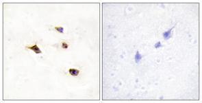 - Immunohistochemistry analysis of paraffin-embedded human brain tissue, using IP6K3 Antibody. The picture on the right is treated with the synthesized peptide.