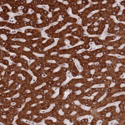 - Immunohistochemistry-Paraffin: ZNF140 Antibody [NBP2-13553] - Staining of human liver shows strong cytoplasmic positivity in hepatocytes.