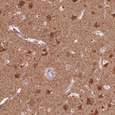- Immunohistochemistry-Paraffin: GPRIN1 Antibody [NBP2-57958] - Immunohistochemical staining of human caudate shows strong cytoplasmic positivity in neuronal cells.