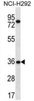 - TSGA13 Antibody (C-term) western blot analysis in NCI-H292 cell line lysates (35 ug/lane). This demonstrates the TSGA13 antibody detected the TSGA13 protein (arrow).