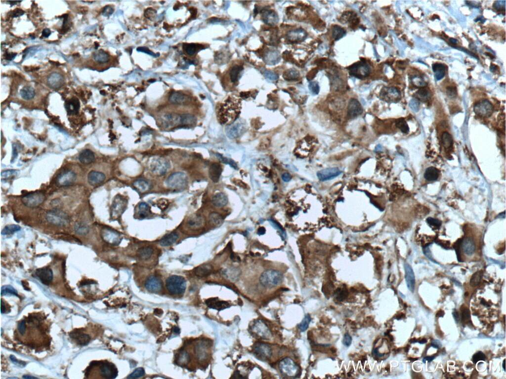 - Immunohistochemistry of paraffin-embedded human breast cancer tissue slide using 55103-1-AP ( CDK3 Antibody) at dilution of 1:200 (under 40x lens). heat mediated antigen retrieved with Tris-EDTA buffer (pH 9).