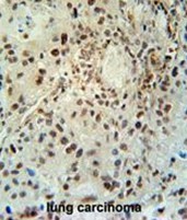 - ABHEB Antibody (C-term) (Cat. #AP50029PU-N) immunohistochemistry analysis in formalin fixed and paraffin embedded human lung carcinoma followed by peroxidase conjugation of the secondary antibody and DAB staining. This data demonstrates the use of the ABHEB Antibody (C-term) for immunohistochemistry. Clinical relevance has not been evaluated.
