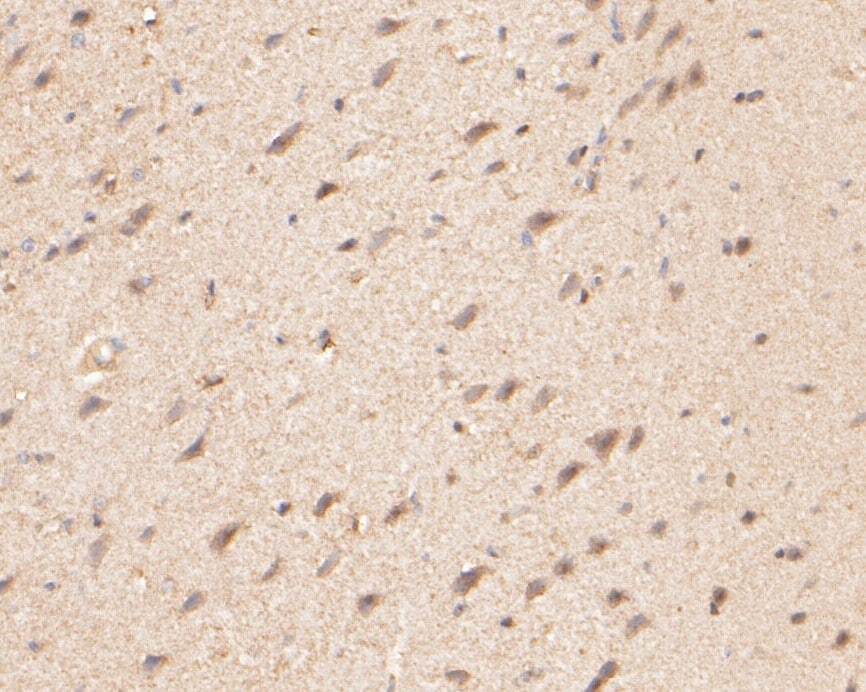 - Immunohistochemical analysis of ZACN in paraffin-embedded rat brain tissue using a polyclonal antibody (Product #PA5-114309). The section was pre-treated using heat mediated antigen retrieval with Tris-EDTA buffer (pH 8.0-8.4) for 20 minutes. The tissues were blocked in 5% BSA for 30 minutes at room temperature, washed with ddH2O and PBS, and then probed with the primary antibody (1:200) for 30 minutes at room temperature. The detection was performed using an HRP conjugated compact polymer system. DAB was used as the chromogen. Tissues were counterstained with hematoxylin and mounted with DPX.