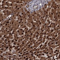 - Immunohistochemical staining of human liver with TBC1D23 polyclonal antibody (Cat # PAB23230) shows strong cytoplasmic and nuclear positivity in hepatocytes at 1:10-1:20 dilution.