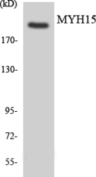 - Western blot analysis of the lysates from Jurkat cells using MYH15 antibody.