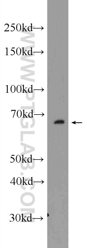- Mouse kidney tissue were subjected to SDS PAGE followed by western blot with 24957-1-AP (C6orf182 Antibody) at dilution of 1:600 incubated at room temperature for 1.5 hours.