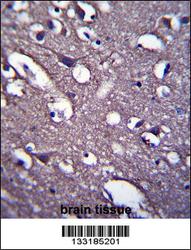 - PRR18 Antibody (C-term) (Cat. #OAAB09932)immunohistochemistry analysis in formalin fixed and paraffin embedded human brain tissue followed by peroxidase conjugation of the secondary antibody and DAB staining.This data demonstrates the use of PRR18 Antibody (C-term) for immunohistochemistry. Clinical relevance has not been evaluated.
