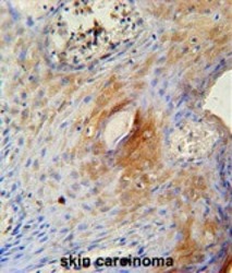 - TPRG1 Antibody (N-term) (AP54346PU-N) immunohistochemistry analysis in formalin fixed and paraffin embedded human skin carcinoma followed by peroxidase conjugation of the secondary antibody and DAB staining. This data demonstrates the use of the TPRG1 Antibody (N-term) for immunohistochemistry. Clinical relevance has not been evaluated.