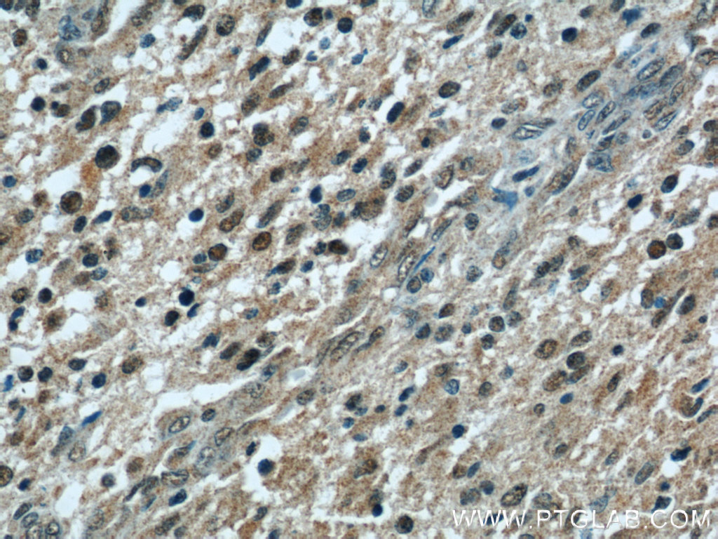 - Immunohistochemical of paraffin-embedded human gliomas using 19122-1-AP(FOXO6 antibody) at dilution of 1:50 (under 10x lens)