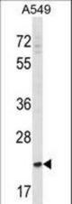 - SLAMF9 Antibody western blot of A549 cell line lysates (35 ug/lane). The SLAMF9 antibody detected the SLAMF9 protein (arrow).