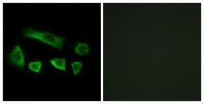 - Immunofluorescence analysis of A549 cells, using NT5C1B Antibody. The picture on the right is treated with the synthesized peptide.